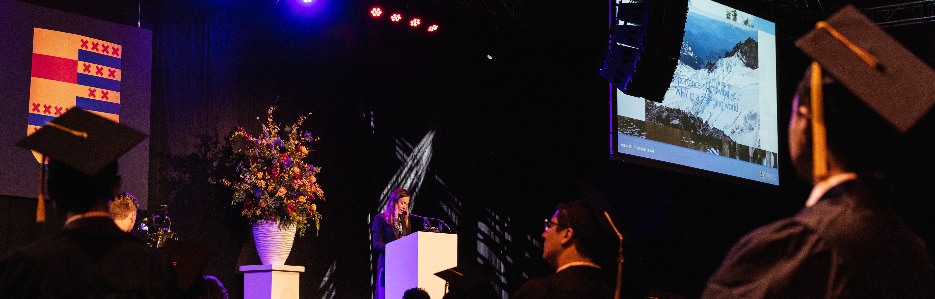 This year’s commencement speaker Andreea Bulisache, IMBA alumna 2013, Senior Business Strategy Manager at Microsoft and International Advisory Board Member at Nyenrode, shared her life after Nyenrode and the impact the MBA program had on her personal growth and career path.