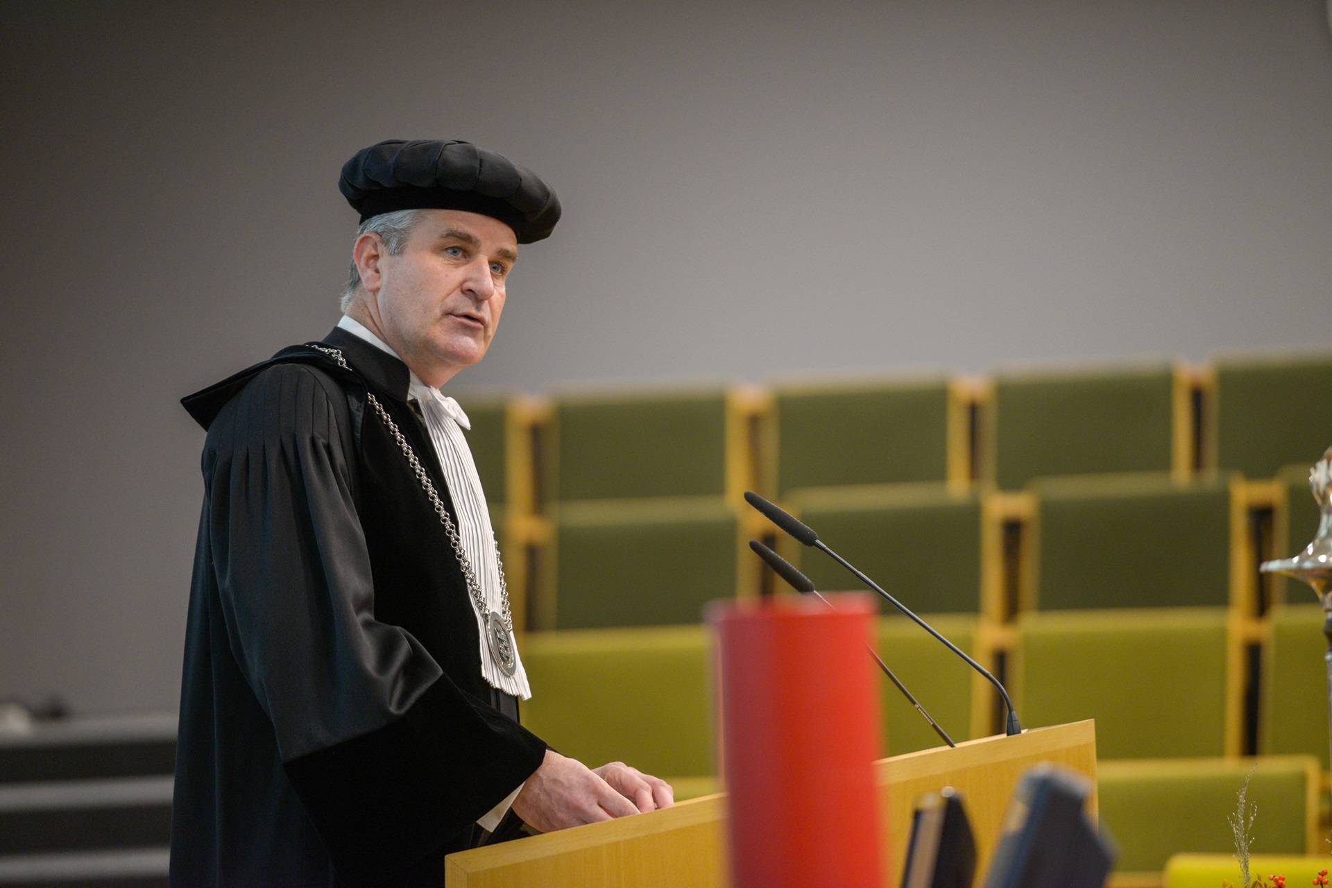 “Prof. dr, Knechel gaf aan het een eer te vinden om de waarde stewardship met dit ere-doctoraat te vertegenwoordigen. Hij ging in op de kernwaarden van Nyenrode. “Wat is de overeenkomst van de kernwaarden?”, vroeg hij zich af. “Voor mij is het hoop. En hoop maakt de wereld beter. Ook sprak hij over vertrouwen, want vertrouwen is essentieel voor een goed functionerende maatschappij. En vertrouwen gaat hand in hand met stewardship.”