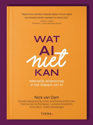 Die vraag vormt de basis van zijn nieuwe boek Wat AI niet kan (internationale titel: Leading with Human Skills). Van Dam schreef het vanuit een groeiende zorg: "Organisaties investeren massaal in AI-capabilities, terwijl ze structureel te weinig investeren in de menselijke vaardigheden die nodig zijn om die technologie wijs, verantwoord en mensgericht te benutten."